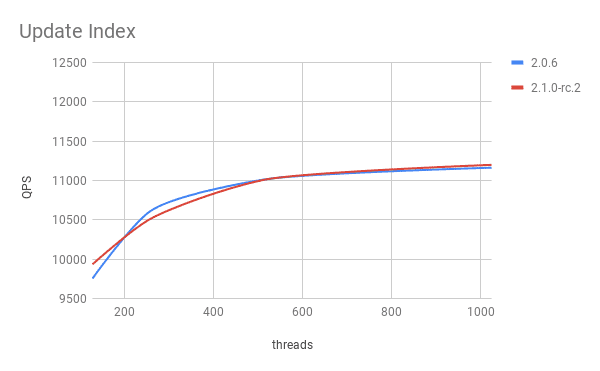 v2.1 与 v2.0 在 Update Index 写入性能上基本一致。
