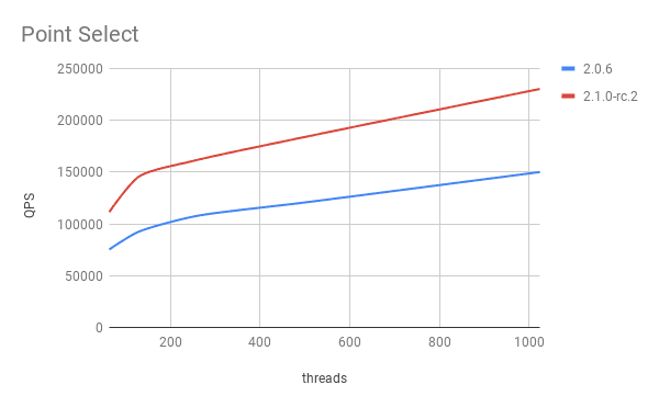 v2.1 比 v2.0 在 Point Select 查询性能上,提升了 50%。