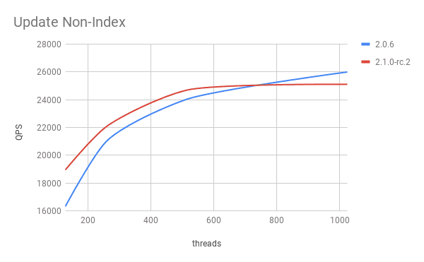 v2.1 与 v2.0 在 Update Non-Index 写入性能上基本一致。